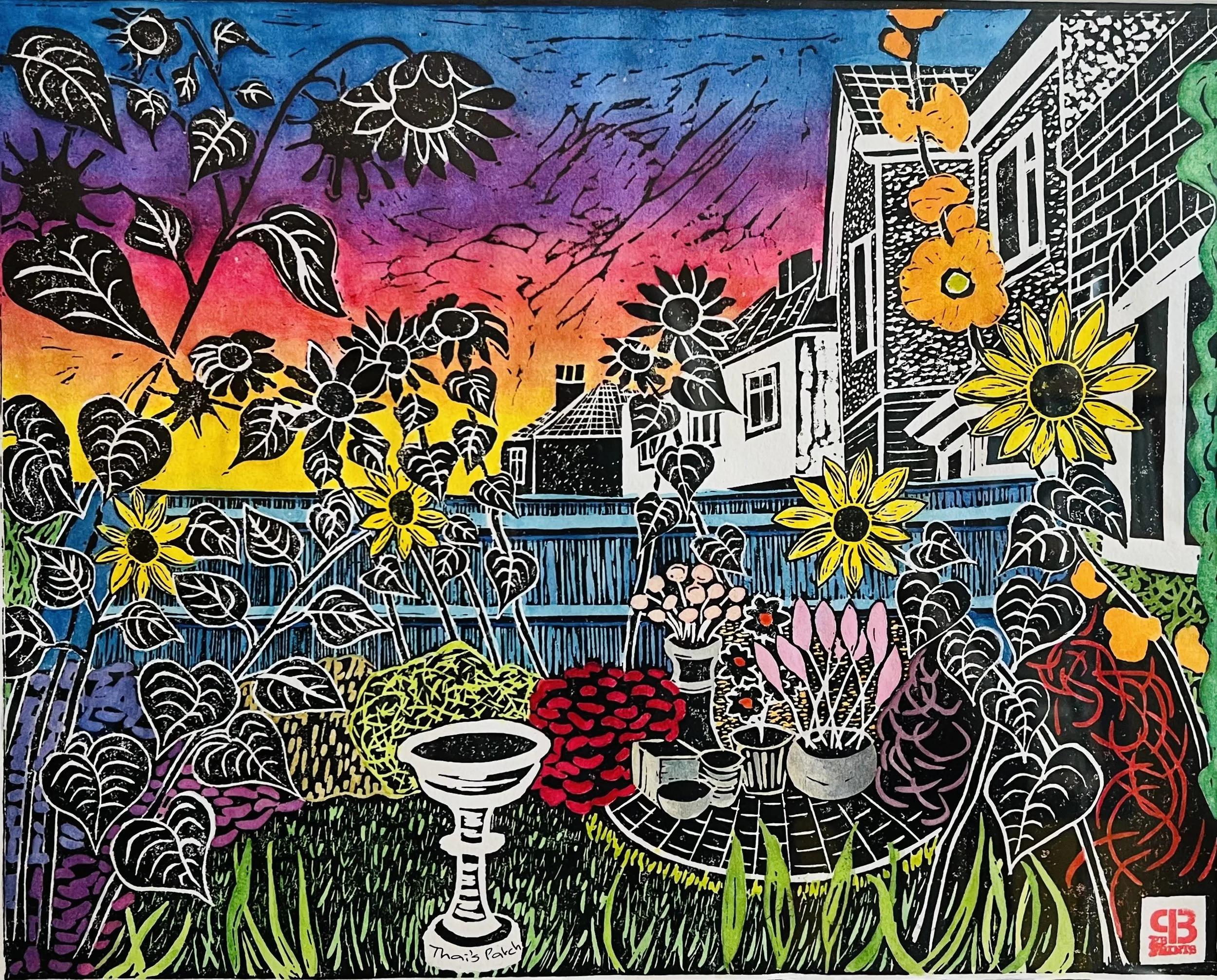 Pamela Bell is a printmaker from Southampton and is the designer behind PB Prints. Pamela works largely in Lino print but also enjoys using gelli print techniques, needle felting and mixed media collage. Pam’s is drawn to bold colours, simple shapes and strong contrasts, all of which are evident in her work. She enjoys expressing music through her artwork and is especially drawn to ‘The Earth Has Music For Those Who Listen’ by George Santayana.