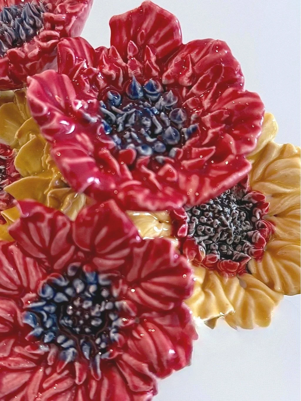 Kate is a ceramicist from Christchurch in Dorset. She creates ceramic flowers in stoneware and porcelain inspired by her allotment of dahlias and love of garden roses. Rather than creating exact replicas, Kate enjoys making gentle interpretations, shaped by observation, memory, and the feel of the clay in her hands. Kate loves to explore ceramic flower forms in many different colours and designs that can hang on a wall, stand on stems, or sit happily on a dining table. Her pieces work both indoors and outdoors, and each one is made to be tactile, individual, and quietly uplifting