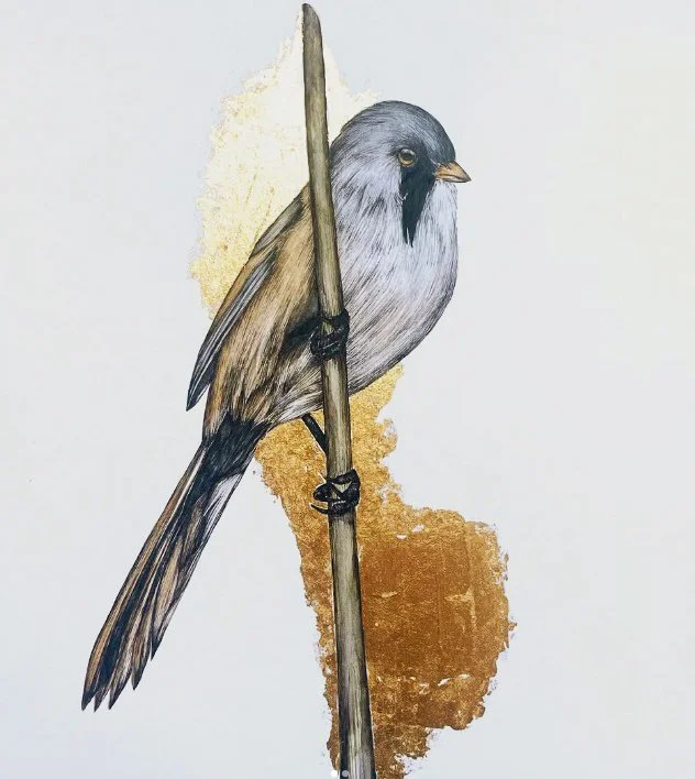 Dais Scott Bennett is a Southampton based artist whose heart belongs to birds and the wild places they inhabit. Living aboard her narrowboat Mallard, she draws and hand-embellishes with gold, bringing each feathered subject to life. With a background in animal conservation and museum studies, she blends art and science to celebrate the beauty and fragility of the UK’s native birdlife. Driven by a mission to draw all 628 of the UK’s bird species, with 75 of these already completed. Dais invites viewers to pause, connect, and rediscover the nature fluttering at their doorsteps.